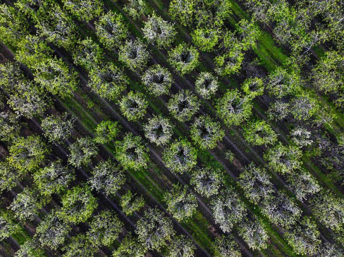 Rengarenk meyve bahçeleri dronla görüntülendi.