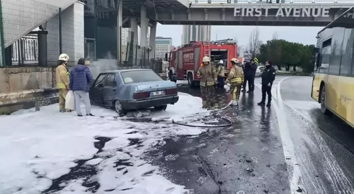 Sürücü, otomobili yolun kenarında durdururken, alevler aracı sardı.