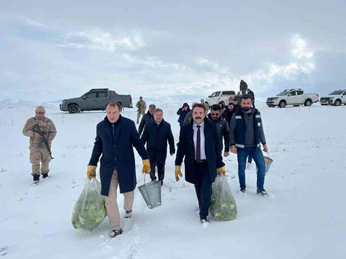 Çaldıran'da yaban hayvanları için doğaya yem bırakıldı
