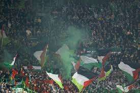 İç sahada oynanan birçok karşılaşmada İsrail işgali altındaki Filistin'e destek veren yeşil-beyazlı takımın taraftarları, Celtic Park ev sahipliğindeki Slovan Bratislava mücadelesinde de açtıkları pankart ve bayraklarla desteğini sürdürdü.