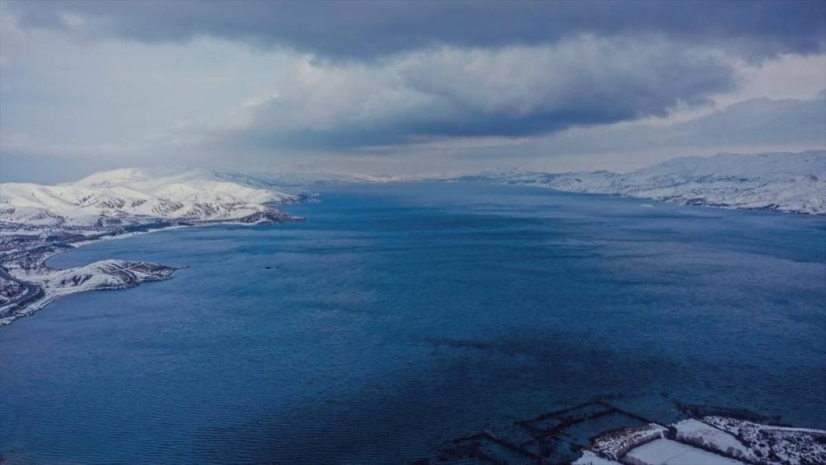 ELAZIĞ (AA) - İSMAİL ŞEN/FEVZİ DAĞ - Elazığ'ın Sivrice ilçesinde Hazar Gölü, kış aylarında çevresi karla kaplı manzarasıyla ziyaretçilerini ağırlıyor.