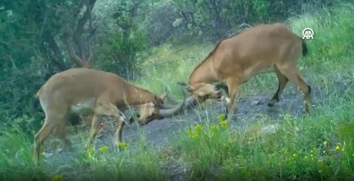 Çorum'da kavga eden dağ keçileri fotokapanla görüntülendi