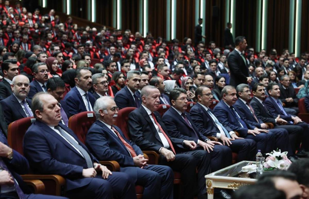 Konuşmasına, törenin ülke, millet ve adalet teşkilatı için hayırlara vesile olmasını dileyerek başlayan Erdoğan, eğitim ve staj dönemlerini başarıyla tamamlayarak mesleğe adım atmaya hazırlanan 712 hakim, 492 Cumhuriyet savcısı ve 147 idari hakimi tebrik etti.