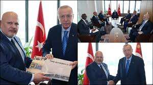 Ermenistan Başbakanı Nikol Paşinyan'a, kendi imzasını taşıyan "Daha Adil Bir Dünya Mümkün" isimli kitabı hediye eden Erdoğan, Uluslararası Ceza Mahkemesi Başsavcısı Khan'a da Anadolu Ajansının (AA) hazırladığı, İsrail'in Gazze'de işlediği suçları tüm açıklığıyla ortaya koyan, temel delil niteliğindeki "Kanıt" ve "Tanık" kitaplarını teslim etti.