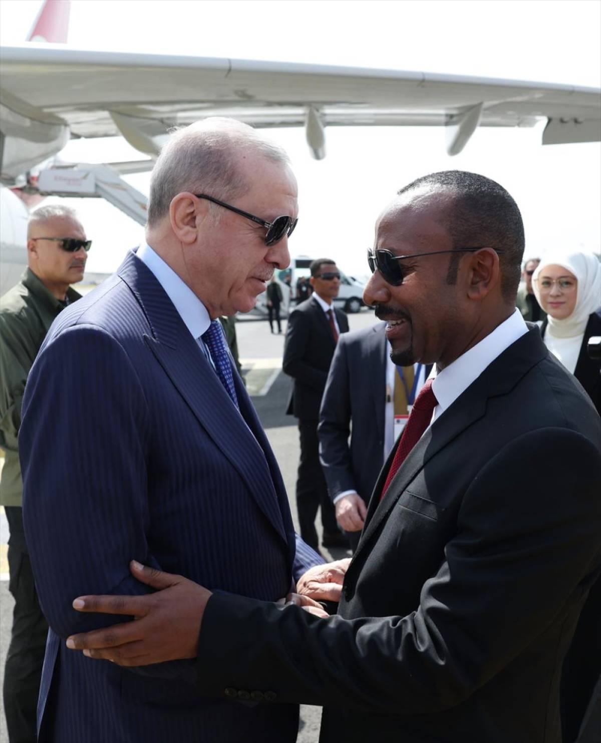 Erdoğan, Addis Ababa Bole Uluslararası Havalimanı'nda, Etiyopya Başbakanı Abiy Ahmed, Etiyopya Dışişleri Bakanı Gedion Timothewos ve Türkiye'nin Addis Ababa Büyükelçisi Berk Baran tarafından karşılandı.
