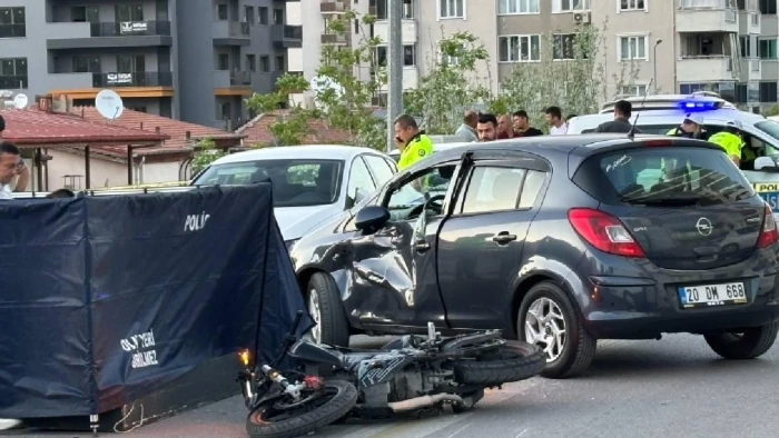 Denizli'de otomobille çarpışan motosikletin sürücüsü hastanede öldü