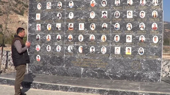 GAZİANTEP (AA) - Gaziantep'in Nurdağı ilçesinde, 6 Şubat 2023’te meydana gelen depremlerde iki çocuğunu kaybeden kırsal Gökçedere Mahallesi Muhtarı Ümit Kaçakçı, hayatını kaybeden 66 kişi anısına mahalle girişine anıt yaptırdı.