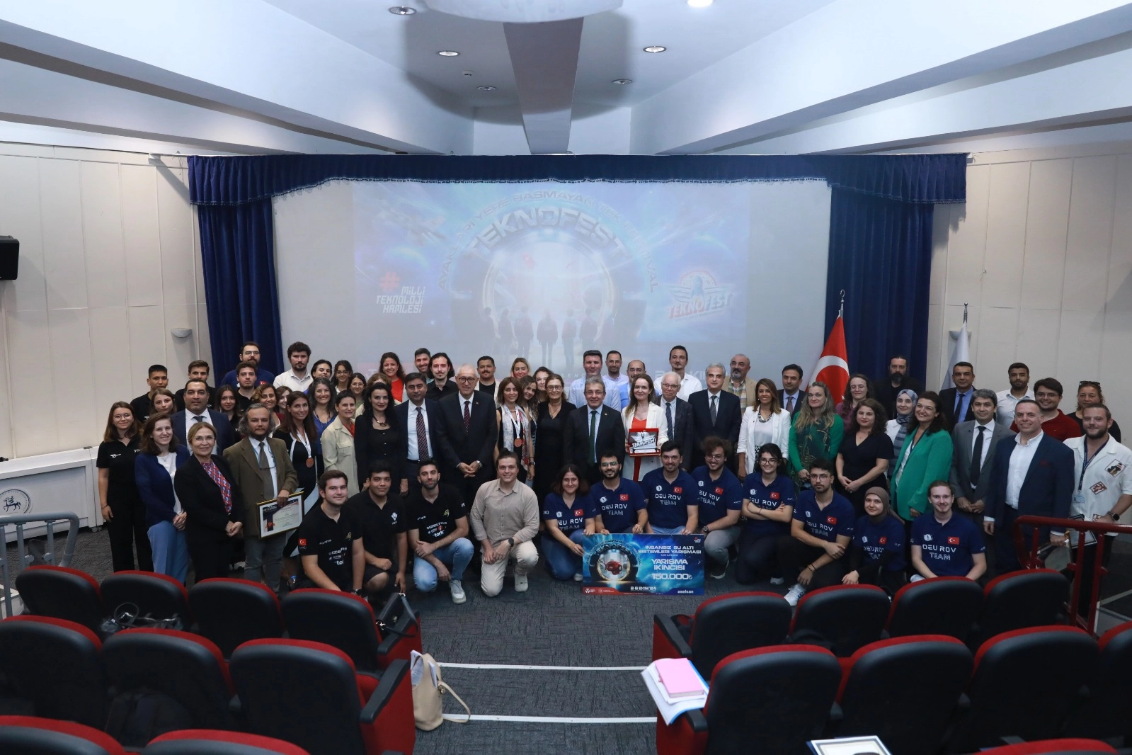 Organizasyonun yapıldığı Adana’dan madalyalarla dönen DEÜ mensupları için, Üniversitenin Rektörlük binasında teşekkür töreni düzenlendi. DEÜ Rektörü Prof. Dr. Bayram Yılmaz’ın yanı sıra akademik ve idari birim yöneticilerinin de katıldığı törende, ödül kazanan takım temsilcilerine ve festivalde görev alan DEÜ mensuplarına, teşekkür belgeleri verildi. Programda konuşan Rektör Yılmaz, Dokuz Eylül Üniversitesi’nin TEKNOFEST'teki projeleri arasında yapay zekâ, robotik ve otonom sistemler, tarım teknolojileri, güvenli yapılar ve sürdürülebilir enerji çözümleri gibi pek çok yenilikçi çalışmanın yer aldığını kaydetti. TEKNOFEST'e damga vuran DEÜ buluşlarının niteliğine vurgu yapan Rektör Yılmaz, "Dokuz Eylül Araştırma Üniversitesi olarak, bilim ve teknolojide öncü olma vizyonumuzu TEKNOFEST Adana’da da sürdürdük. Yarışmalarda beş ödül kazandık. Ayrıca ISIF'24 Uluslararası Buluş Fuarı’nda ekosistemimizdeki 10 buluşu sergiledik ve ikisi altın olmak üzere toplamda 7 madalya elde ettik. Bu büyük başarıyı paylaşıyor, tüm ekiplerimize yeniden tebriklerimi iletiyorum” ifadelerini kullandı.