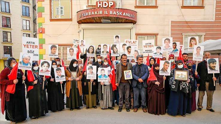 - Diyarbakır annelerinin dağa kaçırılan çocukları için HDP il binası önünde sürdürdüğü oturma eylemine bir aile daha katıldı.