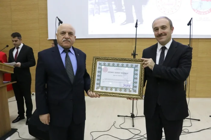 Konuşmaların ardından programa katılan Vali Aziz Yıldırım, emekli olan öğretmenlere belgelerini verdi.