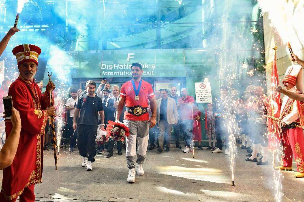 Dünya Güreş Şampiyonası’nda 3’üncü kez şampiyon olarak altın madalya kazanan milli güreşçi Taha Akgül, Ankara’ya döndü. ASKİ Sporlu milli sporcuyu Esenboğa Havalimanı’nın kapısında bekleyen coşkulu kalabalık karşıladı. Büyükşehir Belediyesine ait üstü açık otobüsle şehir turu atan Akgül’e Başkentliler yoğun ilgi gösterdi.