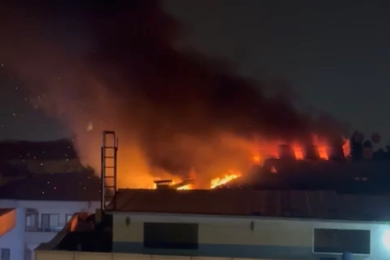 İhbar üzerine bölgeye çok sayıda itfaiye, sağlık ve polis ekibi sevk edilirken, ekipler, çatı bölümünü saran alevlere müdahale ederek yangını kontrol altına aldı.