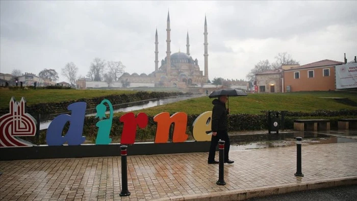 Edirne'de çiseleme şeklinde başlayan yağış zaman zaman şiddetini artırdı.