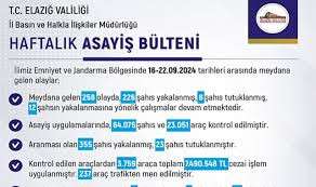 ELAZIĞ (AA) - Elazığ Valiliği emniyet ve jandarma bölgesinde meydana gelen bir haftalık asayiş verilerini açıkladı.
