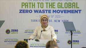 Bu doğrultuda 77. Genel Kurul sürecinde BM Genel Sekreteri Antonio Guterres ile sıfır atık hareketinin temelini teşkil eden bir iyi niyet beyanı imzaladıklarını hatırlatan Emine Erdoğan, "Bizler bu beyanı gelecek nesillere temiz bir dünya bırakabilmek için hazırladık. Bu nedenle insanlık ailesini, beyanı imzalayarak yarın değil bugünden değişimin bir parçası olmaya davet ediyorum." diye konuştu.