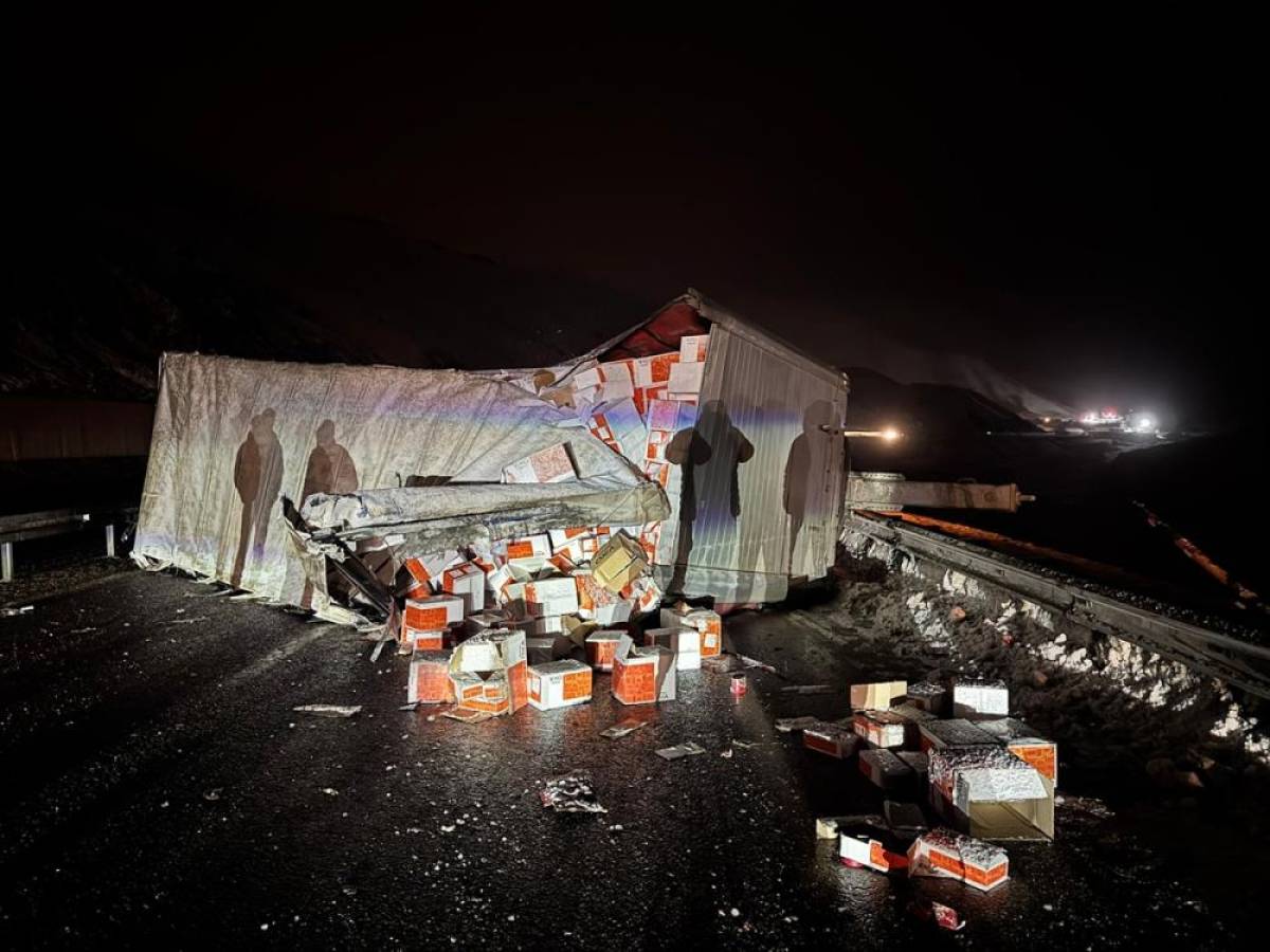 Devrilen tırın kaldırılması için karayolları ve polis ekipleri çalışma başlattı.