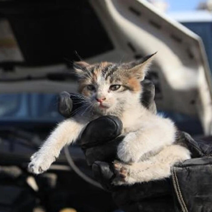 İhbar üzerine olay yerine gelen ekipler, aracın motor kısmında sıkışan kedi yavrusunu dikkatli bir çalışmayla kurtardı.