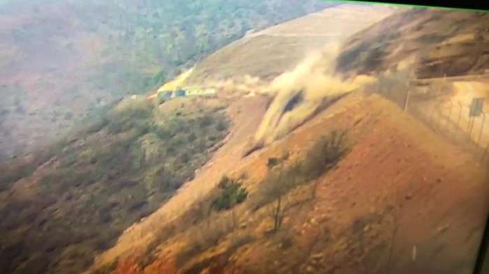 ERZİNCAN (AA) - Erzincan'ın İliç ilçesine bağlı Çöpler köyündeki maden ocağında toprak kayması anı bölgede bulunan bir aracın kamerasıyla kaydedildi.