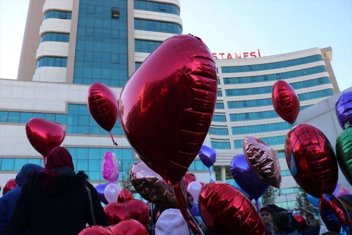 ERZURUM (AA) - Erzurum'da anaokulu öğrencileri, lösemili çocukların tedavi gördüğü hastanenin bahçesinde rengarenk balonları gökyüzüne bıraktı.