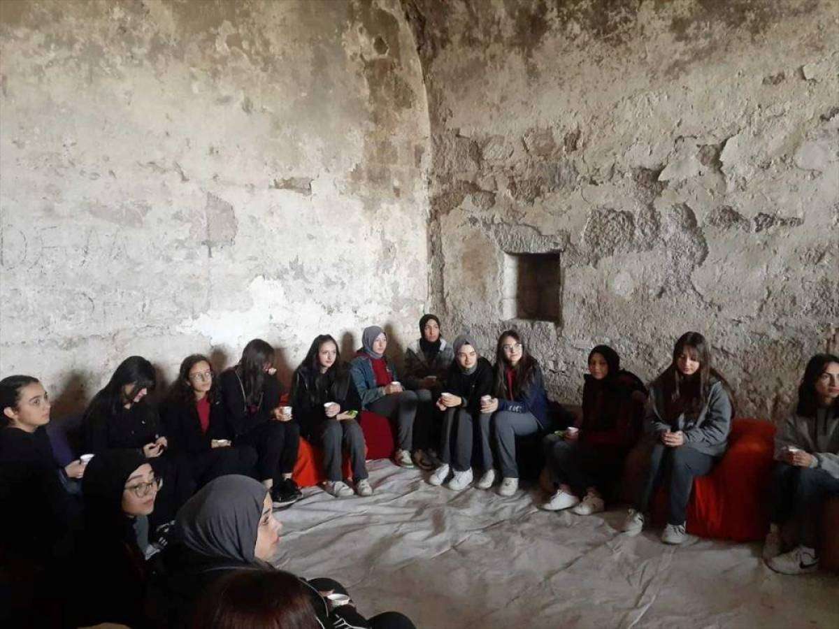 Tabya odalarında sınıf düzeni alan öğrenciler, burada öğretmen Taner Özdemir ile tarih dersini işledi.