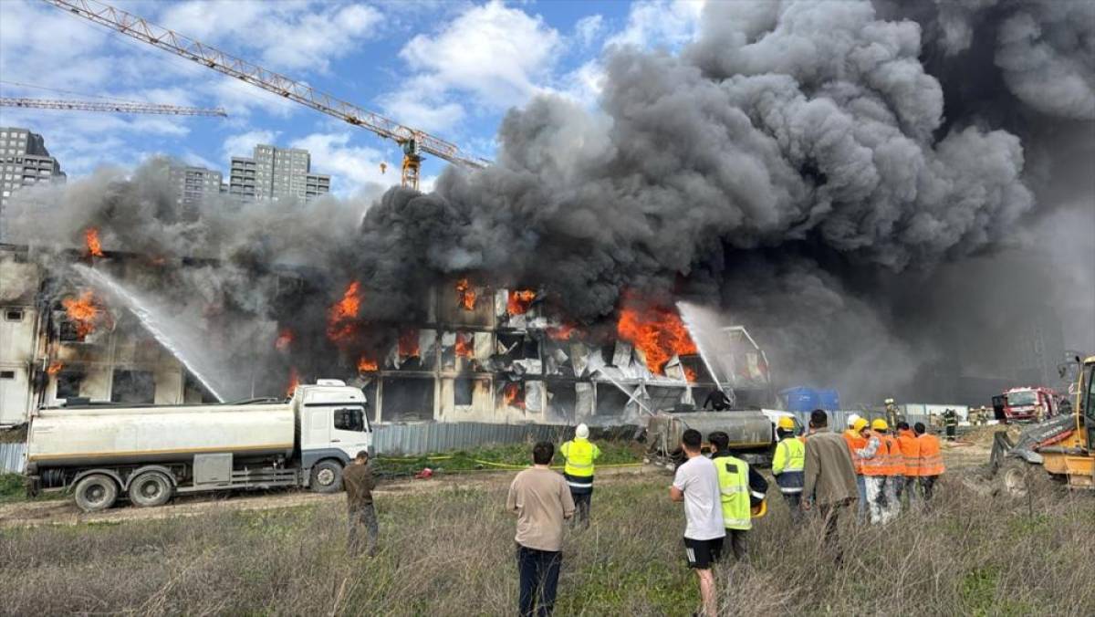 İSTANBUL (AA) - İstanbul Esenyurt'ta 3 katlı işçi konteynerinde çıkan yangına itfaiye ekiplerince müdahale ediliyor.