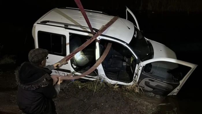Bölgeye gelen vinç yardımıyla bulunduğu yerden çıkartılan araçta hasar oluştu.