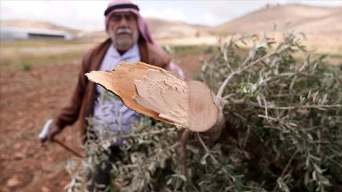 Filistin topraklarını gasbeden İsrailliler, Batı Şeria'da Filistinlilere ait 150 zeytin ağacını söktü