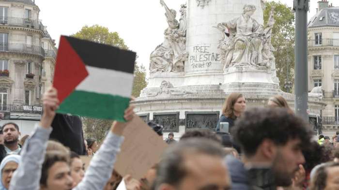 Son haftalarda ülkenin farklı şehirlerinde yasağa rağmen çok sayıda gösteri yapılırken, hafta sonu Paris'te düzenlenen Filistin'e destek gösterilerine on binlerce kişi katıldı.