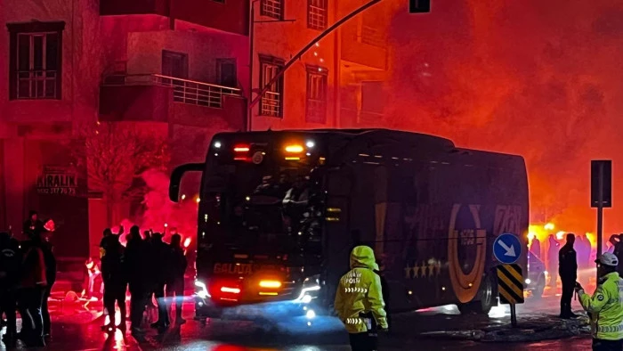 Sarı-kırmızı futbolcuların otele girişi sırasında bir grup taraftar, meşaleler yakıp, tezahüratlar eşliğinde oyunculara sevgi gösterisinde bulundu.