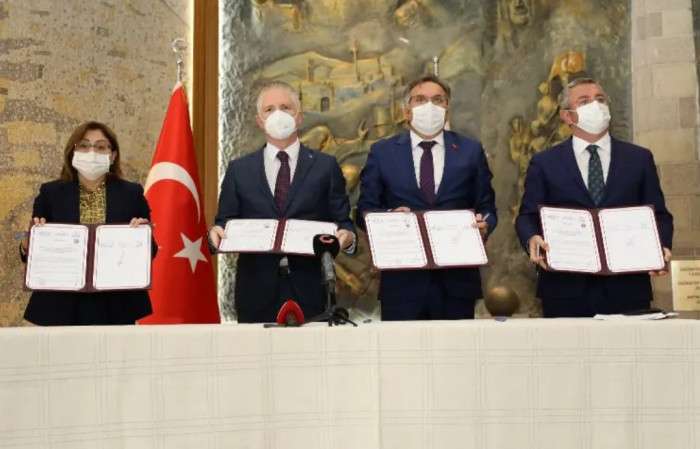 GAZİANTEP (İGFA) - Gaziantep Büyükşehir Belediyesi, Gaziantep Valiliği ve İl Milli Eğitim Müdürlüğü iş birliğinde Gaziantep’teki öğrencilere okuma alışkanlığı kazandırmak, okul kütüphanelerinin kitap ihtiyacını gidermek, öğrencilerin kitaba erişimini kolaylaştırmak ve eğitimde fırsat eşitsizliğini ortadan kaldırmak amacıyla örgün ve resmi ortaöğretim kurumlarının kütüphanelerine kitap temini için protokol imza töreni düzenlendi.