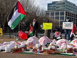 Saldırılarda hayatını kaybeden binlerce sivil için "ölüm eylemi" düzenleyen göstericiler, Joe Biden yönetimine Gazze'de ateşkesi desteklemesi çağrısında bulundu.