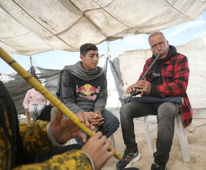 İSTANBUL (AA) - Gazze Şeridi'nde müzik öğretmeni Ahmed Ebu Emşa, İsrail'in saldırı ve yıkımlarına maruz kalan, ateşkese rağmen çadırlarda ve kısıtlı imkanlarda yaşam mücadelesi veren çocuklar ile gençlerin maruz kaldığı trajediyi müzik dersleriyle hafifletmeye çalışıyor.