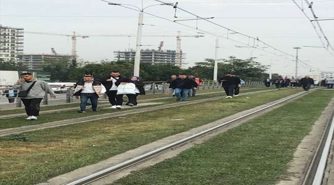 Raydan çıkan tramvaydan inen yolcular nedeniyle durakta yoğunluk meydana geldi. Bazı yolcular, gitmek istedikleri yere ulaşmak için Mehmet Akif istasyonuna doğru yürüdü.