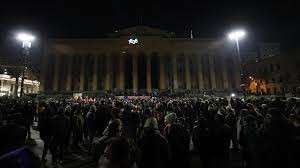 Hükümetin kararına tepkili binlerce kişi, başkent Tiflis'teki parlamento binasının önünde bir kez daha toplanarak, parlamento seçimlerinin yeniden düzenlenmesini talep etti.