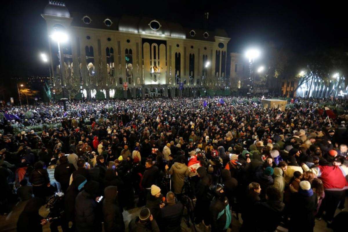 - Binlerce kişi gece saatlerinde Tiflis'teki parlamento binasının önünde toplandı
