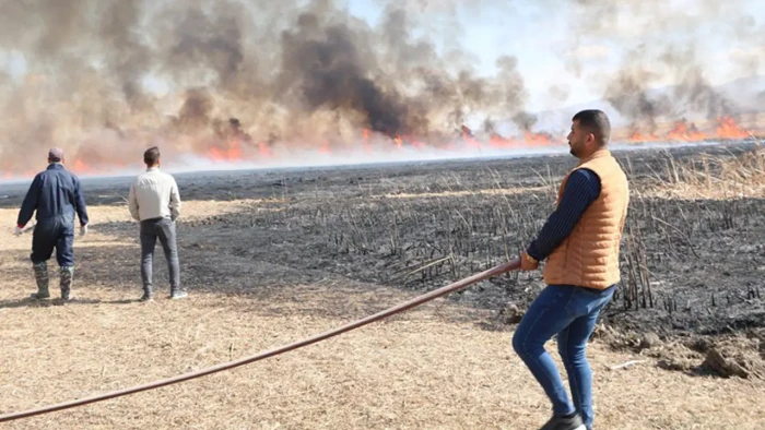 Yüksekova-Şemdinli kara yolu yakınındaki sazlıkta henüz belirlenemeyen nedenle yangın çıktı.