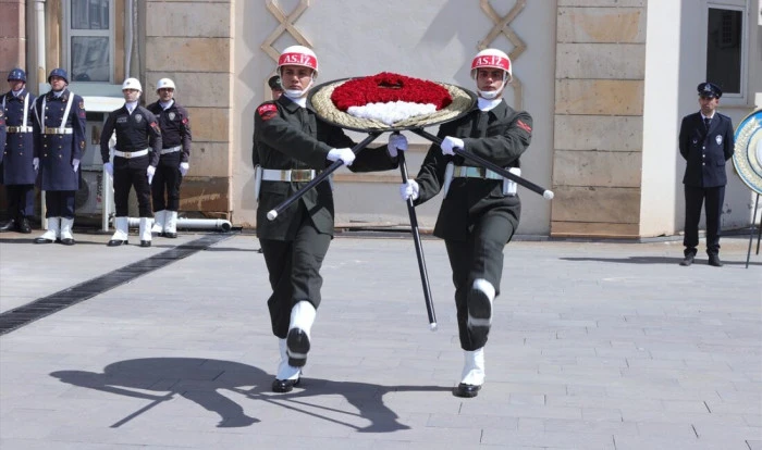 Valilik binası önünde düzenlenen tören, Atatürk Anıtı'na çelenklerin sunulmasıyla başladı.
