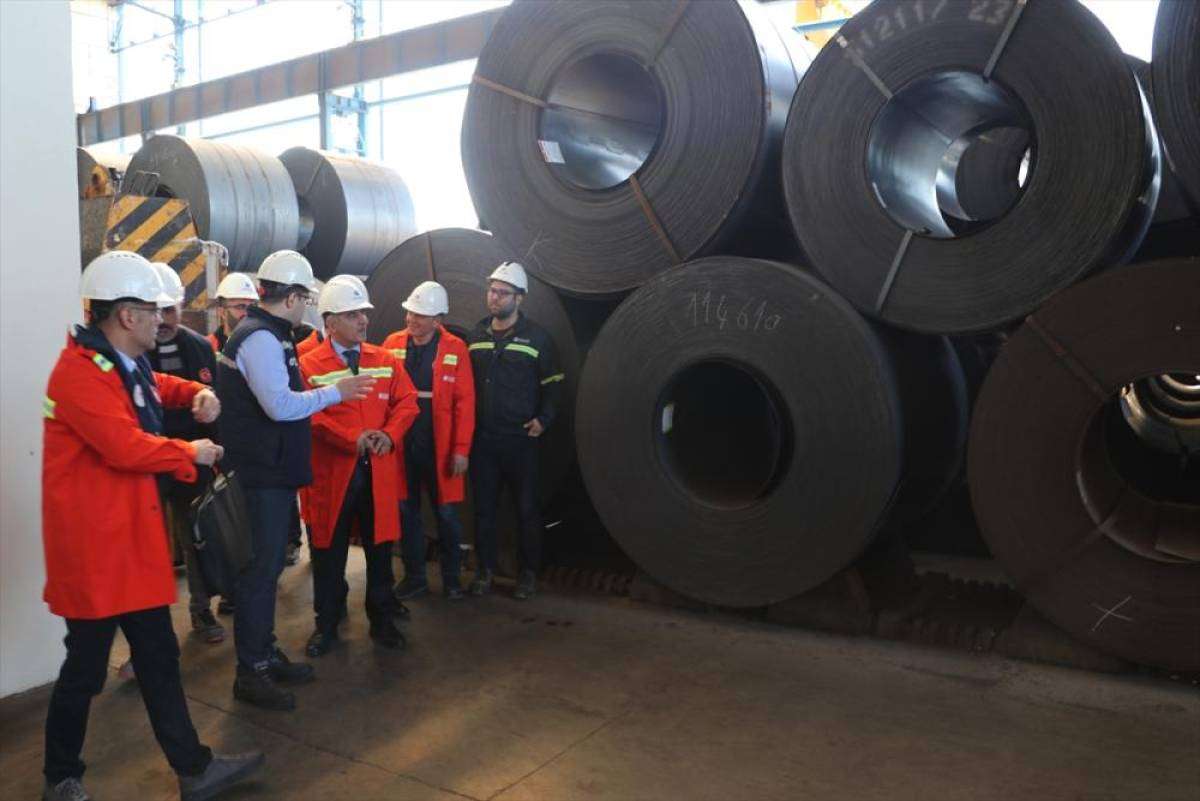 Çevre, Şehircilik ve İklim Değişikliği Bakanlığı Mesleki Hizmetler Genel Müdür Yardımcısı Atila Erenler ve Genel Müdürlük Piyasa Gözetimi ve Denetimi Şube Müdürü Tamer Erakman'ın katıldığı denetimde üretilen yassı çelik ürünlerinden numuneler alındı.