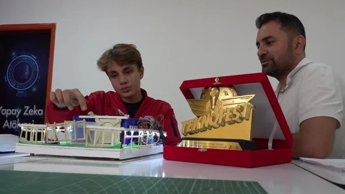 MARDİN (AA) - HALİL İBRAHİM SİNCAR/BEŞİR ŞAVUR - Mardin'de Prof. Dr. Aziz Sancar Bilim ve Sanat Merkezi'nde ortaokul öğrencisi Eren Özdemir, hayvanların afet anında kaçabilmelerini sağlayan yapay zeka destekli otomatik tahliye sistemi tasarladı.