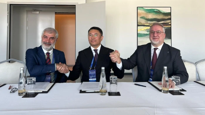 İSTANBUL (AA) - Uluslararası Nakliyeciler Derneği (UND), Albayrak Şirketler Grubu ve Kazakistan Demiryolları (KTZ) arasında Hazar Denizi’nde modern, sürdürülebilir ve çok paydaşlı Ro-Ro hizmeti geliştirilmesine yönelik stratejik mutabakat zaptı imzalandı.