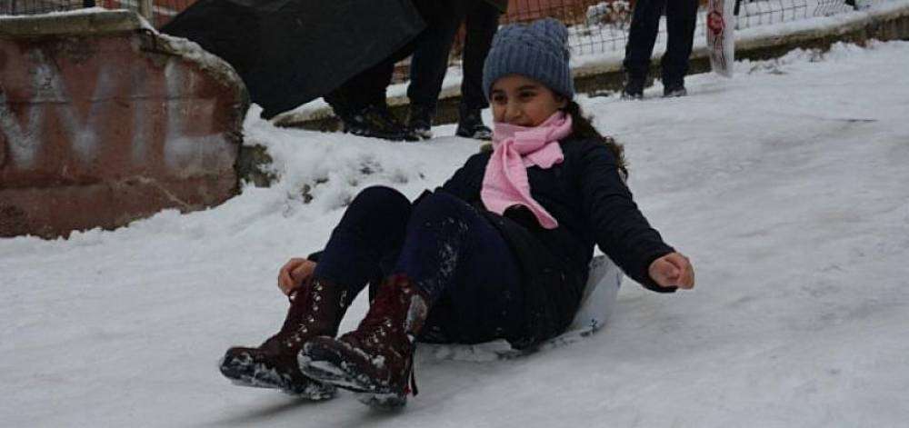 Keçiören'de karın keyfini ise poşetlerini alarak sokaklarda kayak yapan çocuklar çıkardı.