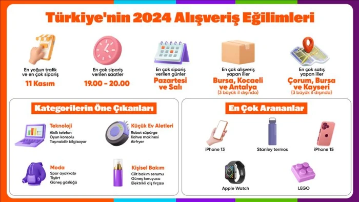 Şirketten yapılan açıklamaya göre, yıl boyunca teknoloji, giyim ve küçük ev aletleri kategorileri kullanıcıların alışverişlerinde öne çıktı.