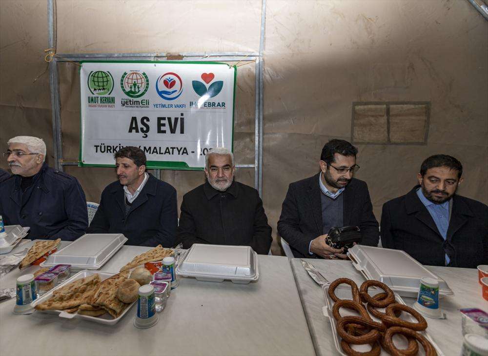 Yapıcıoğlu, Umut Kervanı İnsani Yardım Vakfı tarafından Battalgazi ilçesi Şehit Fevzi Mahallesi'nde kurulan aşevi ve yemekhanesinde depremzedelerle iftar yapıp sohbet etti.