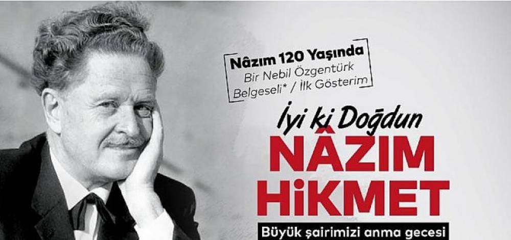 İBB Kültür Daire Başkanlığı’nın Nâzım Hikmet Sanat Vakfı işbirliği ile düzenlediği 15 Ocak 2022 Cumartesi akşamı Cemal Reşit Rey (CRR)Konser Salonu’nda gerçekleştirilecek “İyi ki Doğdun Nâzım Hikmet” etkinliğinde; yapımcılığını Nâzım Hikmet Sanat Vakfı ve Bir Yudum İnsan Film’in, yönetmenliğini Nebil Özgentürk’ün üstlendiği “Nâzım 120 Yaşında” belgeselinin ilk gösterimi yapılacak.