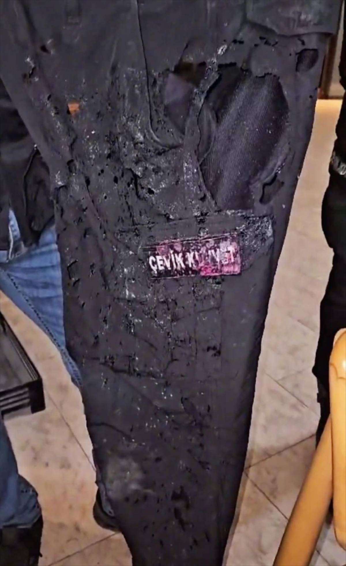 Yerlikaya, sosyal medya hesabından, İstanbul Büyükşehir Belediyesine yönelik başlatılan yolsuzluk ve terör soruşturmasına ilişkin bu gece Saraçhane'de düzenlenen gösterilerde üzerine asit atılan bir polis memurunun üniformasını paylaştı.