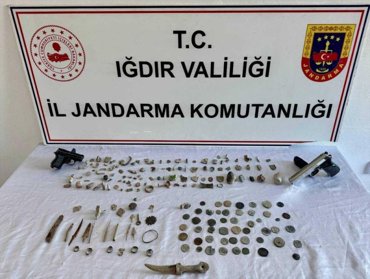 Ekipler şüphelinin Tuzluca ilçesindeki adresine düzenledikleri operasyonda, 44 sikke, 136 tarihi eser niteliğinde obje ve 2 ruhsatsız tabanca ele geçirdi.
