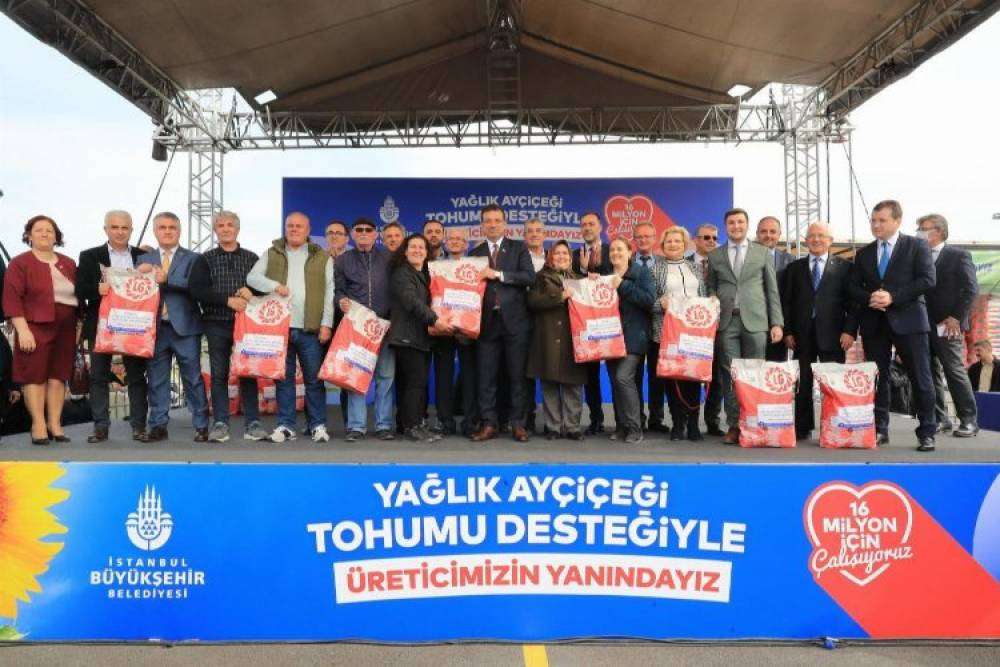 İBB Başkanı Ekrem İmamoğlu, kentte toplam 68 bin 600 dekar alanda üretim yapan 1592 çiftçiye, 2 bin 541 torba yağlık ayçiçek tohumunun dağıtımını Silivri’den başlattı. “Tek derdimiz var: Bu şehrin tarlaları, bu şehrin bahçeleri beton olmasın” diyen İmamoğlu, “Bu şehirde bu kanal yapma sevdasında olan insanlara her yerde söylüyorum: 150 milyon metrekare araziyi daire, bina yapma niyetindeler. Beton, şehir insanın karnını doyurmuyor” ifadelerini kullandı. Türkiye’nin tarımsal üretimde dışa bağımlı hale gelmesinin ve yaşanan ekonomik krizin herkesi mutsuz ettiğini belirten İmamoğlu, “Türkiye'nin tarıma ve çiftçiye geçmişte verdiği önemi yeniden verme zorunluluğumuz vardır. Mustafa Kemal Atatürk'ün sözünün bize emaneti gibi, sizleri tekrar milletin efendisi yapmak zorundayız. Yoksa aç kalırız” uyarısında bulundu.