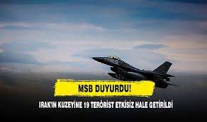 ANKARA (AA) - Milli Savunma Bakanlığı, Irak'ın kuzeyinde 7-9 Eylül tarihleri arasında düzenlenen hava harekatlarında 19 teröristin etkisi hale getirildiğini bildirdi.