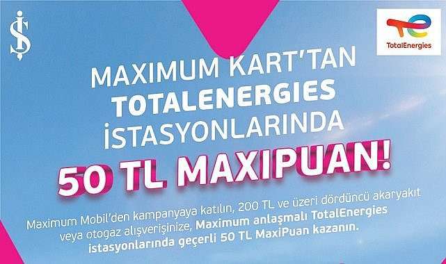 ANKARA (AA) - İş Bankası Maximum Kart sahipleri, M Oil ve TotalEnergies istasyonlarında kullanabilecekleri kampanyadan yararlanabilecek.