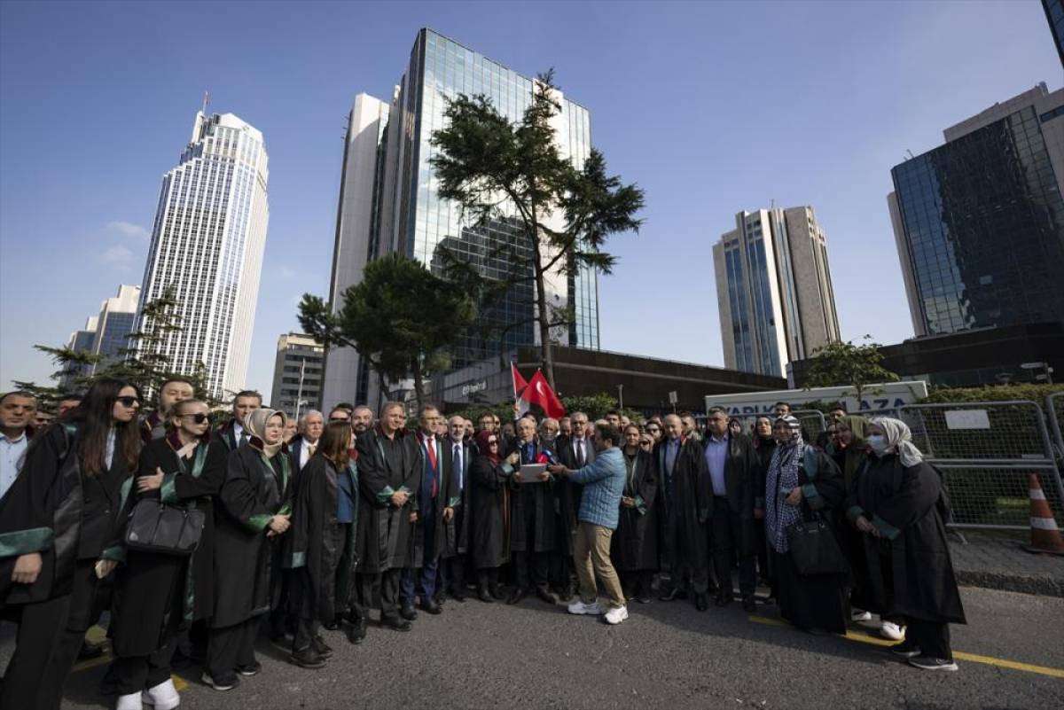 Cüppelerini giyen avukatlar, ellerinde Filistin bayrağı taşıdı.